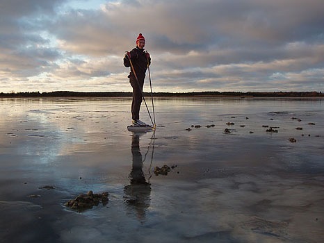 Testisime täna Haapsalus mere jääd - nii siledat jääd polegi veel näinud, ei uskunud, et pärast Soodla veehoidlat saab veel siledamat jääd olla, aga täna oli. Nii sile, et oli lausa raske uisku kantima saada. Võtsime eesmärgiks minna Saunja lahele, aga kuna vahepealt oli vesi lahti ning lisaks olid lahti ka kõik kaldaääred, siis ei õnnestunud meil Saunja lahele jõuda ja pidime piirduma Tahu lahega ... ja nii kõva tuult pole uiskudel veel kogenud ... ja track planetis kah.